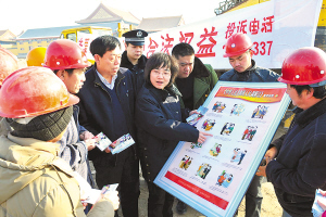 近日,西青区辛口镇综治办会同辛口派出所和司法所联合开展“关爱流动人口,维护合法权益”普法活动,派出干警深入辖区建筑工地为节后返津的外来务工人员开办法制小讲座。图为干警在工地举办法制小讲座。