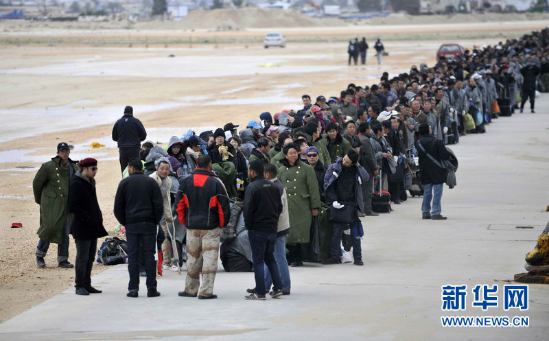 | 2月25日,在利比亚班加西港,中国撤离人员排队准备登上“希腊精神”号客轮。中国驻希腊大使馆租用的两艘希腊客轮将4000多名在利比亚中方人员撤至希腊克里特岛后,于当地时间24日晚再次赶往利比亚班加西港,继续帮助撤离在利比亚的中方人员。 |