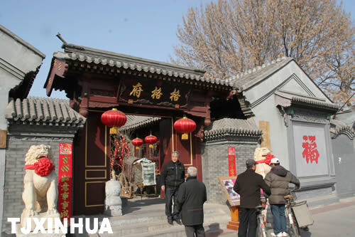 2月25日,市民在“格格府”博物馆门前欣赏四合院景观。