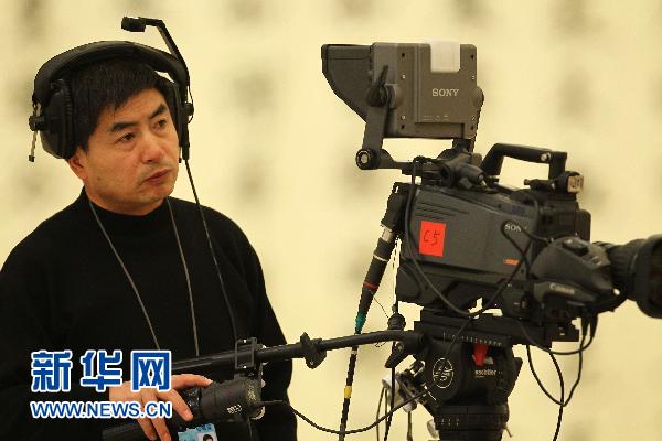 | 3月10日,摄像记者在现场拍摄。 |