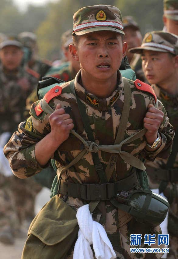 2011年3月11日,“90后”武警新兵的军营体验。3月10日,武警武汉支队组织去年年底入伍的800多名新兵在驻地徒步拉练,从清晨5时至傍晚6时徒步行军百余里,以提高新兵综合素质。图为,武警武汉支队的新兵在徒步行军途中新华社发史伟摄
