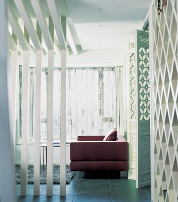 只有两个人住,所以设计师将墙全部打通。这个初步动作得到了认可。田粟说,“简单的隔断就够了,这个房子空间上最有趣,作为编导,应该站在不同的空间,用不同的视角观察,在不同的地方看书,激发自己不同的灵感。白色,这个最简单的颜色可以让采光不好的房子明亮。”