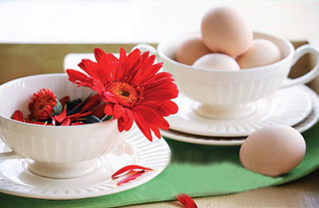 在漂亮的汤碗中盛放一点大米、豆子,也可以创意出小小的盆景。记住米至少盛放容器的三分之一,以避免花朵摇晃不稳。