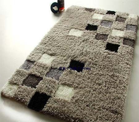 推荐理由:银灰色的地毯简约、现代,别具特色的格子拼花让地毯十分出彩,与紫色主题沙发区巧搭不突兀。