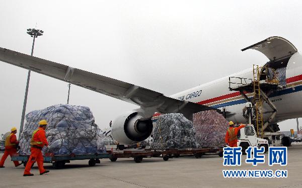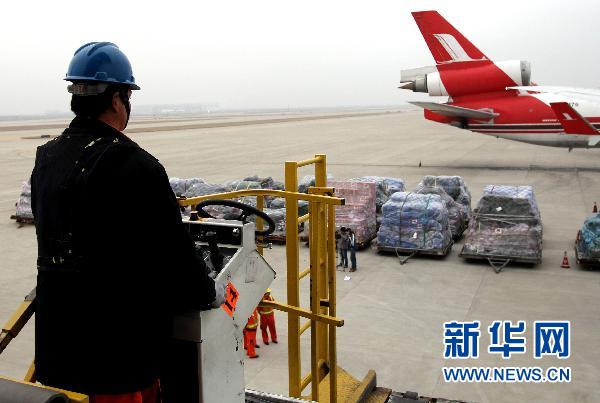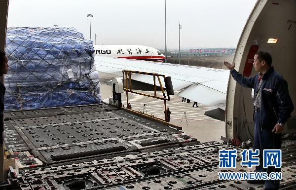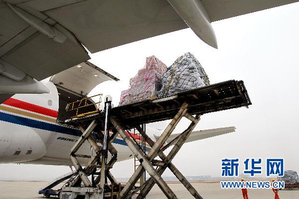 中国政府向日本提供的首批紧急人道主义救援物资14日17时许由民航包机启运日本。
