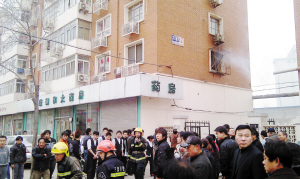 消防人员到场时发现,二楼住户家的窗户已被烧毁,火苗和浓烟正从窗户蹿出,随时可能危及楼上居民。消防人员询问得知,起火的房屋是员工宿舍,屋中无人员被困,但楼上还有一些居民因楼内烟雾较大,没敢下楼。一组消防人员立即用水枪灭火,另一组消防人员使用破拆工具将大门破拆开,进入家中扑救。还有部分消防人员将三至六楼还没下楼的四五名居民疏散至楼下安全地点。约15分钟后,大火被扑灭。目前,有关部门正在对起火原因进行调查。记者 王昊