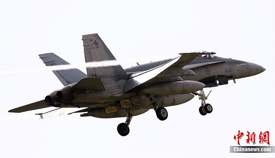 加拿大空军的CF-18C战斗机抵达意大利,因为是转场飞行,未携带任何武器,只挂载了三具副油箱。