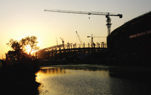“两翼”是指东西两侧的学校、居住区及配套建设区,规划总面积29平方公里。其中,“东翼”规划除了职业院校外,还包括南开大学新校区;“西翼”规划除了职业院校外,还包括天津大学新校区。在一期工程的20个月里,先后有4万名建设者参加工程大会战,他们凭借着超乎想象的意志力和“5+2”、“白+黑”的精神,奇迹般地完成了133万平方米的建设任务,共种植乔木41万株、灌木2.5万株,铺装地被162万平方米,同时切改各类配套管线1787公里,粘贴外墙劈开砖1亿块。