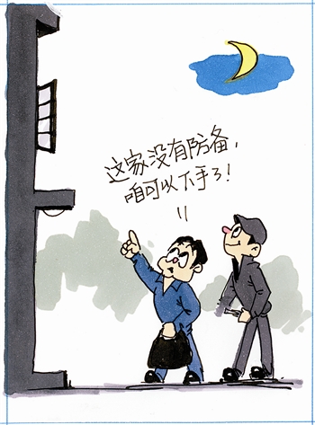 另外,民警提示,我们要改变传统的防盗观念,一些简单易行的小窍门也可以有效防范入室盗窃犯罪行为。民警建议夏季睡觉时在推拉窗的窗扇上加装一个内置插销,使已开启的窗扇与窗框之间的距离不要大于15厘米,这样既可以通风,又可以防盗。最后民警提醒,如遇窃贼入室,一定要保持镇静,在保护好自身安全的情况下,斗智不斗狠,待时机成熟尽快拨打“110”报警。同时,要尽最大可能保护好现场痕迹物证,以利于案件的侦破工作。绘图曹永祥