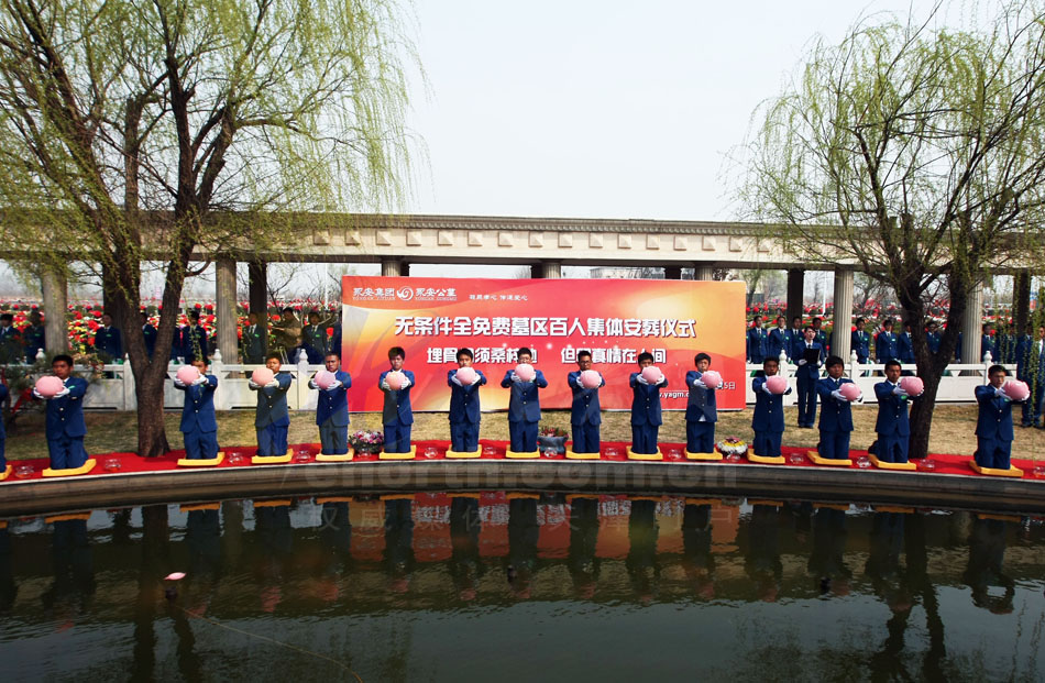 天津北方网讯:2011年4月5日永安公墓“无条件全免费墓区”安葬170位逝者,分别在上午7:00和10:00举行有史以来最大规模的安葬仪式,庄严隆重地送逝者最后一程。“无条件全免费墓区”对具有环保意识、接受全新安葬形式的客户实行全免费服务。(记者 马成)