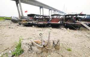 记者从湖南省防汛抗旱指挥部办公室了解到,今年以来,湖南全省降水量异常偏少,尤其是洞庭湖区春旱严重,初步统计目前已有182万亩农田春耕受到影响,另有44万余人的生活饮水受到影响。右图为岳阳洞庭湖大桥下裸露的湖床和停泊的船只。新华社记者 龙弘涛 摄