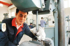天津市天铁轧二制钢有限公司自主研发生产的50毫米热轧带肋钢筋和抗震结构用钢筋逐步替代国外产品,并占有国内风能等建设项目70%以上市场份额。刘玉祥 陈立兴 摄