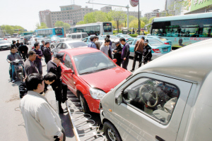 天津:红色轿车跨越隔离带逆行连撞6车 无人伤亡 ...