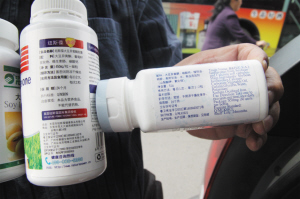 记者在天津医药集团江都路店内看到,柜台上摆放着一种标注为“纽斯葆牌大豆异黄酮胶囊”的产品。仔细观看包装上的配料表,位于第一位置的就是大豆异黄酮,且批准文号不是国家药监部门对于保健食品审批的“国食健字”,也没有保健食品的特殊标识:“蓝帽子”。从批准文号不难看出,该产品只通过了当地卫生部门对普通食品的审批。在敬一堂药店红桥区一号路店和河东区宁月花园店,记者还看到一种标注为“美澳健牌大豆异黄酮钙软胶囊”的产品。该产品配料表的第一位也标明是大豆异黄酮,且获得的也只是当地卫生部门对普通食品的审批。在海王星辰药店,记者看到标注为“海王牌大豆异黄酮软胶囊”的产品,在配料表下的说明中却显示,每千毫克产品中含大豆异黄酮39毫克。