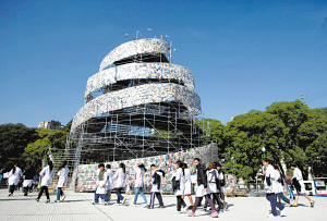 由布市文化局筹建的巴别书塔位于布宜诺斯艾利斯市中心的圣马丁广场。书塔高25米,呈螺旋状盘旋上升。沿楼体悬挂来自54个国家和地区捐赠的3万册书籍。