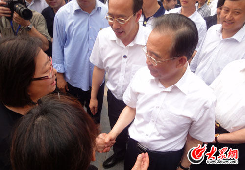 | 5月8日,温家宝视察山东省援建的北川巴拿洽商业步行街。 |