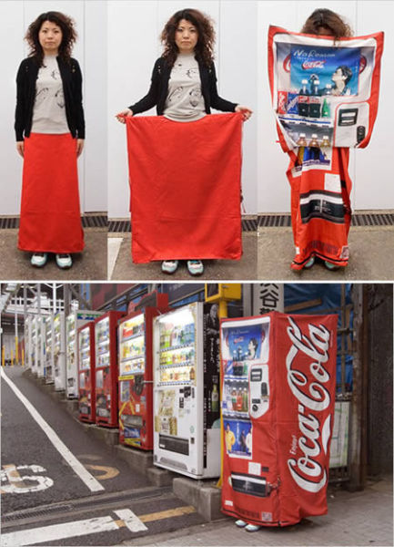 这款裙子最让人佩服的一点是它的创新性和实用性。日本成衣厂商设计了这款裙子,目的是让日本女性能够凭借这款裙子,将自己伪装成自动贩卖机,从而避免遭到咸猪手的袭击。但是,当大风刮起时,人们依然能够看到她们的脚……尽管如此,你还是不得不钦佩他们的尝试。