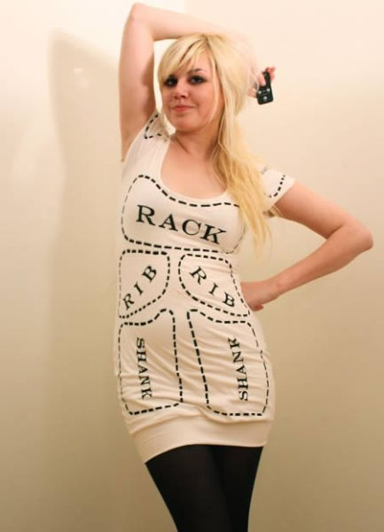 这款骨架裙能够让你向朋友、熟人和陌生人展示你的骨架,不失为一堂生动的动物解剖课啊!衣裙上的英语也正是表明了这一点。你的骨架、臀部和身体的其他主要部分都可以由这款裙子勾勒出来。