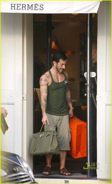 Birkin被传神地音译为铂金包,正好凸显了它“包中之皇”的崇高地位。Birkin是稀有的,它永远坐在奢侈品金字塔的顶端,受着时尚信徒的顶礼膜拜。这些信徒中,不乏高高在上的明星。我们搜罗了一些这个星球上最知名的birkin粉丝,看看他们痴迷到什么程度。 1. Marc Jacobs 这个是……对,你没看花眼!大名鼎鼎的“小马哥”Marc Jacobs,不但是自己同名品牌的设计师,还一手包办Louis Vuitton的所有创意工作,在时尚圈的分量可谓数一数二。LV的包包是出了名的昂贵,其名牌魅力早已征服了全世界男男女女的心。只是,小马哥并不使用自家产品,反而甘冒大不韪地选择LV的第一竞争对手,——爱马仕的明星产品。姑且不论LVMH集团的大老板会怎么想,这个事实说明了这样一个道理:birkin包是一线中的一线产品。
