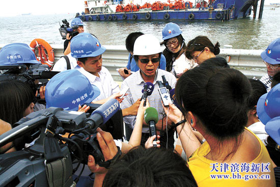 天津北方网讯:从中船重工临港造修船基地的千米超大型厂房到北方最大的粮油综合加工基地,从重装、粮油产业板块到探索产学研结合新模式的天大滨海工业研究院,昨日,中外媒体走进“十大战役”联合采访活动的40多名中外记者来到了飞速发展的临港经济区,香港文汇报的记者彭琛琛用“不可思议”来形容自己感受的滨海速度。