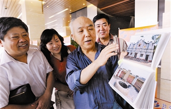 柴大郑老先生在向人们介绍他的“红旅相册”。本报记者 王 津摄