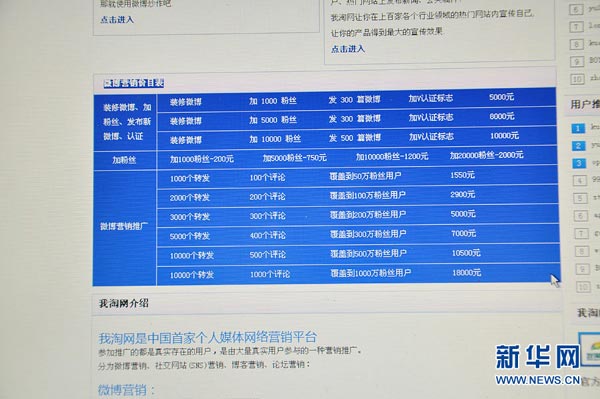 然而,“中国网事”记者23日在“58同城”网站看到,“luomo123456”“jshengshx”等诸多卖家发帖称:“提供代理微博官方认证,无论新浪、腾讯、搜狐、网易,统统能搞定。只有你想不到的,没有我们做不到的。”