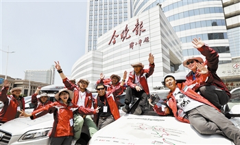 | 今晨,奥迪Q7蒙古国际科考正式启程。本报记者 曹 彤摄 |