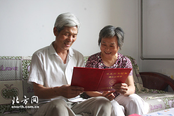 天津北方网讯:日前,北方网记者采写报道了《老人为救落水女孩致腰椎骨折 见义勇为不后悔》一事后,在社会引起了强烈反响。随后,记者向天津市见义勇协会递交了相关信息,相关负责人得知刘建林等四位市民的救人事迹后,立即派相关人员予以认定,并于7月6日,对刘建林、李万树、王向华和李振禄四人奋不顾身积极救助轻生女子的见义勇为行为进行表彰,河西区见义勇为协会为四人审核颁发了《见义勇为确认书》和奖金。