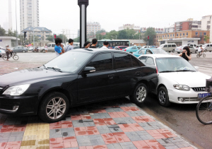 天津北方网讯:昨日上午,在地铁九号线大直沽中路站外上演了“无人驾驶”的惊险一幕,一辆停在地铁入口旁便道上的黑色东南轿车因未拉手刹溜到马路上,撞到一辆过路的白色千里马轿车。
