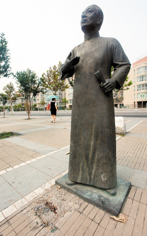 “骆玉笙的铜像是昨天不见的,我们前天晨练时还有呢。”据周边市民介绍,不久前铜像前的大鼓不见了,没想到这么快连铜像都没了,“最近总有几名外地男子在这儿转悠,可能早就盯上了这个铜像,在夜间将其偷走。”市民猜测。