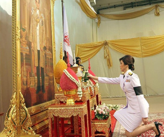 ●8日晚,泰国新当选总理英拉·西那瓦接受泰国国王普密蓬·阿杜德谕令,正式担任泰王国第28任总理。8日,在泰国曼谷为泰党总部,英拉·西那瓦在泰国国王的画像前致意。(上图)
