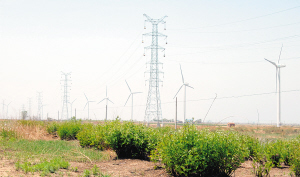 马棚口风电项目一期位于大港古林街马棚口一村,拥有33台单机容量为1500千瓦的风电机组,总容量为49.5兆瓦。目前,该电场电源线施工已经完成,滨海供电分公司已经为其送电。在现场看到,33台80米高的风机矗立在水边,显得十分壮观。“虽然看起来并不是很大,其实每台风机的叶片都有86米长,扇面可360度旋转,能够捕捉各方向的风。”现场工程师说,“风机还具有先进的控制功能,在低于额定风速时进行转速控制,以使风轮捕获最大风能,在高于额定风速时进行变桨控制,限制功率输出,从而输出相对稳定的电能,降低对电网的冲击。”