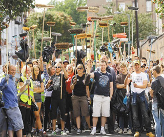 ●9日,在英国首都伦敦东部的哈克尼、克拉珀姆等发生骚乱的地区,众多志愿者和普通居民聚在一起,开展修复和清扫工作,伦敦市民正在用实际行动恢复社会秩序。组织者说,希望通过这样的方式告诉人们,大家都是这里的一分子,不要破坏自己的家园。(上图)
