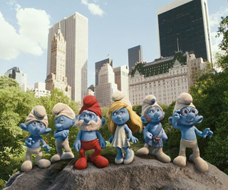 ●3D《蓝精灵》今日登陆全国各大院线。本片根据经典漫画和动画片改编,重现70、80后童年的美好回忆。据悉,为达到良好的效果,索尼影像的268名员工花了近36万个小时制作《蓝精灵》的三维动画,影片还有1557个3D立体画面。(上图:《蓝精灵》剧照)