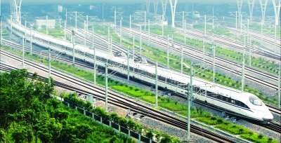 | 从16日零时起,京沪高铁实施新运行图。调整后,京沪高铁列车开行数量将由目前的88对减少到66对。图为8月15日,一辆京沪高铁列车驶离上海虹桥站。 |