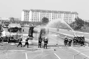 随后,经消防、安监部门等工作人员商议决定,将事故罐车的甲醇抽出来,倒到另一辆罐车内,再清理事故罐车。昨日19时40分许,现场清理完毕,道路恢复通行。