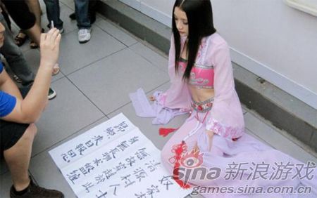 此前不久,更为“雷人”的上海地铁“作秀”也在网上传播。上海地铁某出入口通道惊现“穿越女”,一袭乌黑长发,一身粉红色露脐古装的女子斜倚在地上,并在地上铺开一张“大字报”:“奴家本是清源村人士,无故穿越于此,身无长物,求盘缠回乡,来日报恩。”