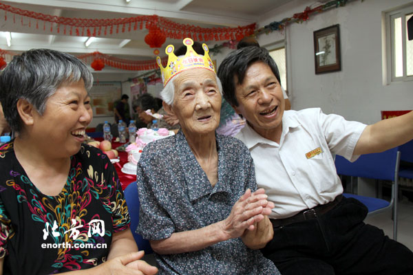 天津北方网讯:9月5日下午,南营门街竞业里社区居委会成员及部分居民代表在社区活动站举办了一场题为“中秋、重阳、喜乐汇”的欢迎仪式,欢迎邱秀卿老人“回家”过寿、过节。