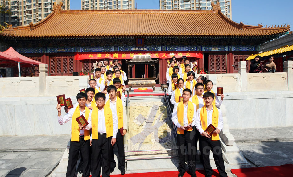 天津北方网讯:10月3日上午10:00,天津文庙举办了“首届成人礼活动”,来自于天津崇化中学的30名男、女同学在此受礼。据了解,“成人礼”是我国传统文化中最重要的礼仪之一,是人生四大礼中第二大礼仪,已有几千年的历史。传统的成人礼是“以成人之礼来要求青年人的礼仪”。(记者 马成 吴宏)