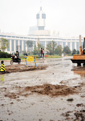 “一出天津站就看到前广场一片汪洋,还以为是海河水漫过来了。”市民刘先生说,昨天12:00左右,天津站前广场上一井口处不断往外冒水,旁边的花坛里还在往外渗水,并夹杂着大量泥沙,泥沙被冲到世纪钟下的马路上,近6米的花草被破坏。水带绵延200多米,站前广场变成一片汪洋。