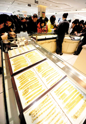 天津北方网讯:离农历春节还有两个月时间,传统的“购金旺季”即将来临。上一周国际金价的下跌,更给许多有购金打算的市民注入了“兴奋剂”。但记者在采访中了解到,除少数香港品牌饰品价格跟随国际金价“微调”外,多数内地品牌金饰品只见“促销潮”,未见“降价潮”。商家以店庆、节日等为主题的促销活动在上周末频现,优惠力度约每克10元—25元。业内人士分析,若国际金价持续下滑,近几周或将迎来“黄金买点”。