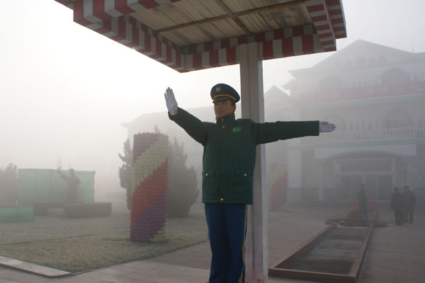 大雾里指挥车辆