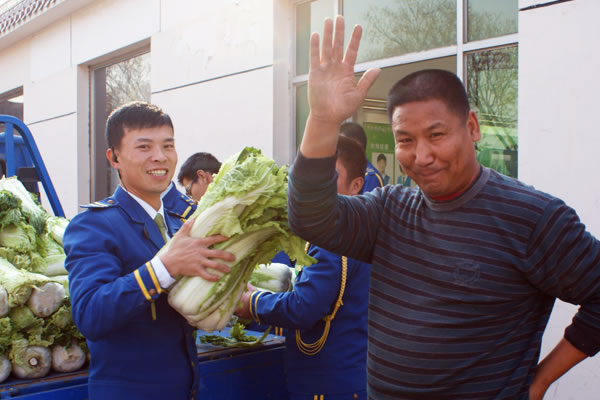 永安公墓与周边村民建立了“鱼水情深”的感情,每年过年过节村民都会送些自家的特产给永安人,今年村里种的白菜大丰收,这不,11月10日,渔坝口三村村长拉着满车的菜送到了永安,感谢十几年来企业对村里的扶贫助困。