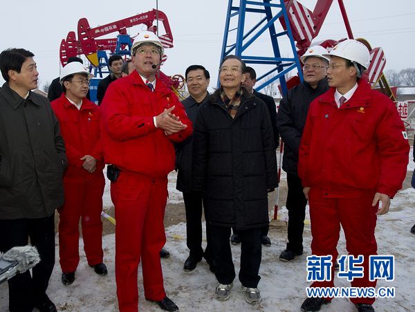 | 1月21日,中共中央政治局常委、国务院总理温家宝冒着严寒来到长庆油田陇东油区,与石油工人共迎新春佳节。这是温家宝来到长庆油田第二采油厂西峰采油二区看望在一线工作的干部职工,向大家拜年,并和工人们一起在食堂用餐。 |