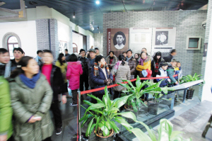 | 李叔同纪念馆内参观的观众 |