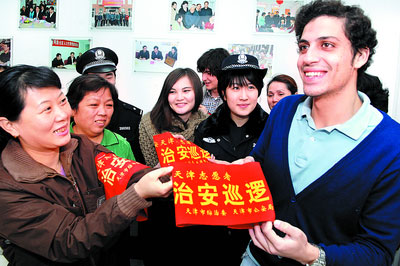来自葡萄牙的留学生艾果·马克西姆和欧宏诺将结束在津的学习生活。在津期间,他们热爱公益事业,积极参与平安天津志愿者的活动。日前,和平区昆明路社区为他们举行了欢送会,他们说要将志愿者标志带回家乡,留作纪念。