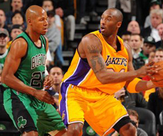 ●今日,凯尔特人主场对阵湖人,两大豪门重现了总决赛般的激烈对决,最终湖人经加时赛88-87险胜。湖人终止2连败,同时也终结了凯尔特人的5连胜。全场比赛科比24投11中得到全场最高分27分,另有5篮板4助攻。(上图)