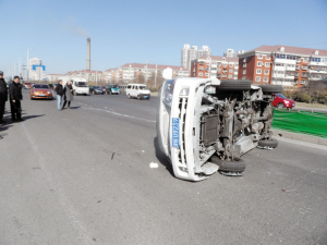 昨天12:30左右,河东区东纵快速路与华捷道交口,一辆橘红色轿车停在辅道上,前面有被撞击的痕迹。前方十多米处,一辆白色面包车发生侧翻,挡风玻璃破裂,路面有明显划痕,地上还有血迹。在主路上,还依次停着一辆奇瑞轿车、一辆面包车和一辆吉普车,三车追尾。其中面包车前后被夹击,损伤比较严重。