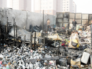 天津北方网讯:昨天上午10:30左右,南开区白堤路与灵隐道交口附近的一个废品收购站燃起大火。火焰有两层楼高,着火面积约有60平方米。消防员到达现场后,封锁了附近的路面,大约1个小时后,火终于被扑灭。目击者称,失火废品站的两侧连着其他废品站,之间仅有一排纸夹板相隔,一旦串联,恐怕火势难以控制。着火原因目前还在进一步调查中。记者徐燕孙瑜实习生翟钰嘉