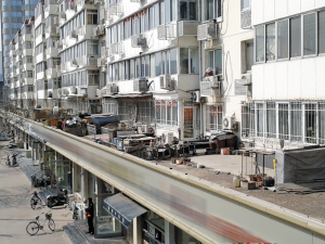 昨天记者在横跨东兴路的人行过街天桥上看到,蝶桥公寓沿街一侧一楼为底商。底商相比居民楼楼体向外延伸近2米,因而楼顶面积也较大。这“富余”的空间并没有被浪费,二楼居民每户窗前都堆放着许多杂物,从废弃的家具到搭建的小屋,从花盆到生活废品,楼顶被摆得满满当当。一户居民还在自家窗前搭建了一个小屋,周围是木头、纸盒等易燃物品。据一位居民介绍,底商楼顶的空间确实给部分居民提供了方便,大伙可以把不常用却舍不得丢的东西放到窗外,久而久之,东西越堆越多。虽然也会时常清理,但是很多都是易燃物品,确实存在很大的安全隐患。